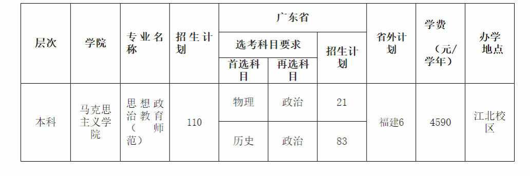 4、特色优势:广东省特色专业,校级一流专业。拥有马克思主义理论重点学科和省级精品课程,师资力量雄厚。专业历史悠久,依托客家地区红色基地和其它人文资源开展实践教学,注重学生的综合素质培养。